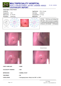 Store Colposcopy images, videos in DICOM format. Generate colposcopy reports in PDF and DICOM format. Further it can be sent to the PACS server.